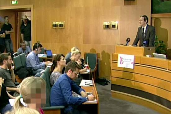 در همان روز آسانژ در سمینار شرکت کرد که در ردیف اول حضار و با لباس صورتی دختری حدودا 20 ساله به نام جسیکا نشسته بود.